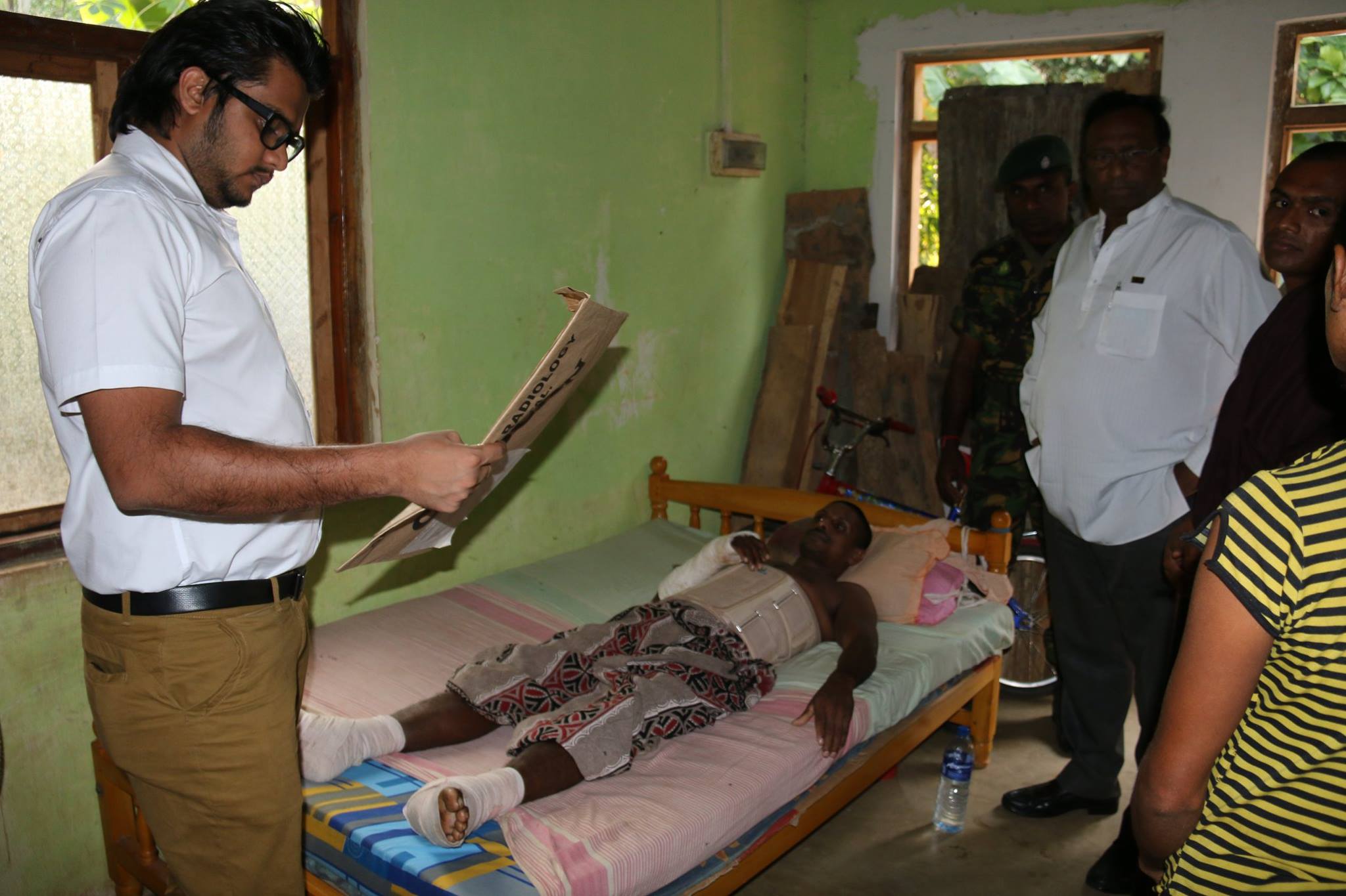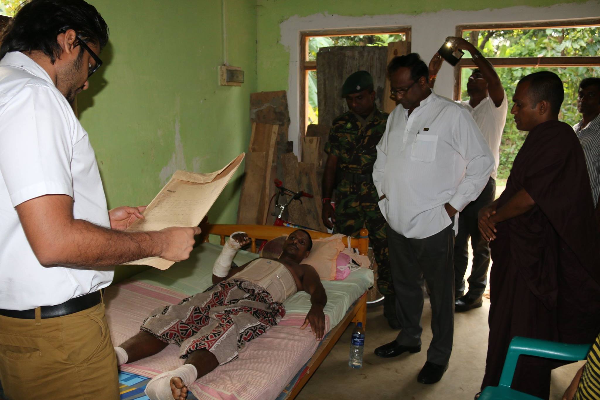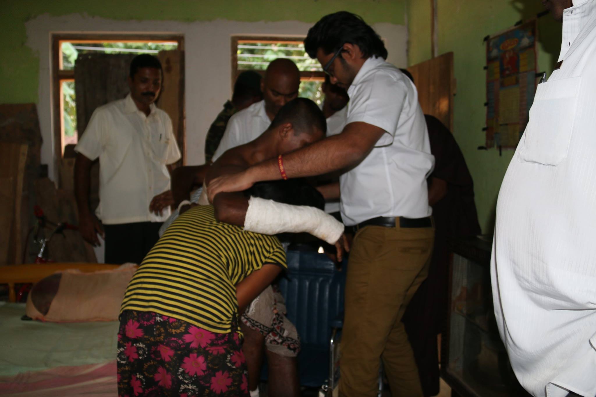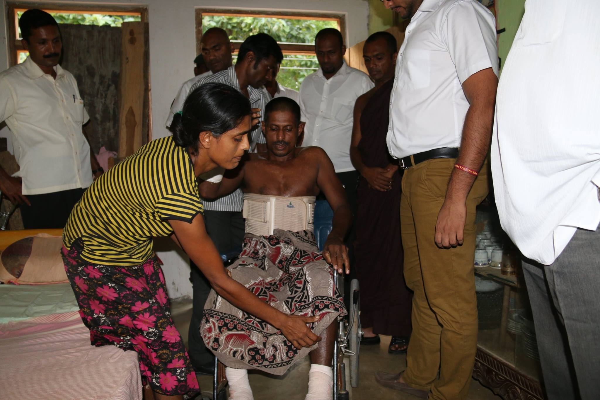 උහන මාලිගාතැන්න, ගම්මානයේ ගහකින් වැටී ආබාධිත වූ පුද්ගලයෙකු හට රෝදපුටුවක් පරිත්යාග කරන අවස්ථාව